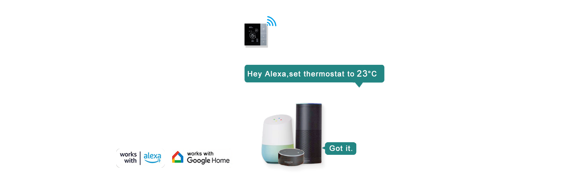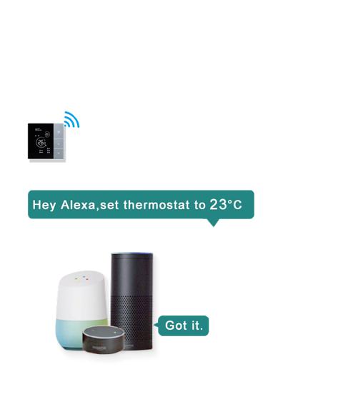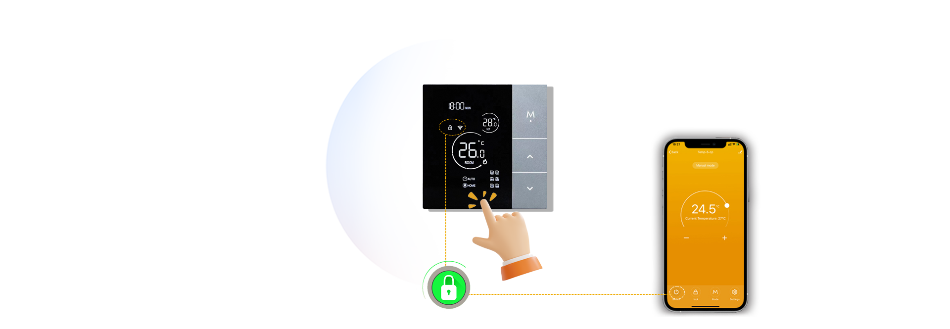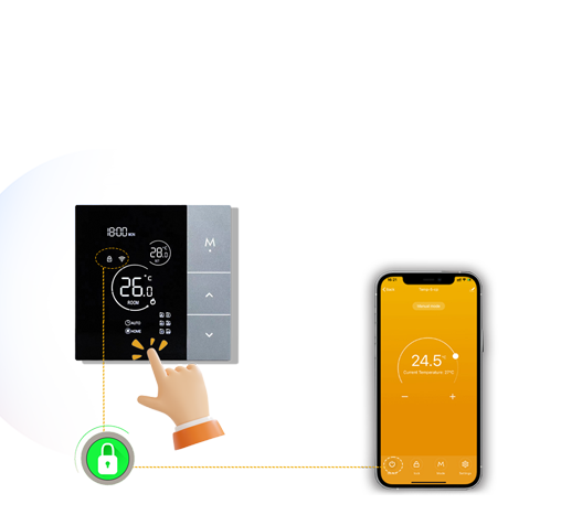 This thermostat features APP remote control and voice control, equipped with a clear LED display and sensitive touch buttons. It connects stably via 2.4GHz WIFI, supports programmable schedules, dimmable ambient lighting, and includes a child safety lock, fully meeting your needs for intelligence, convenience and safety.