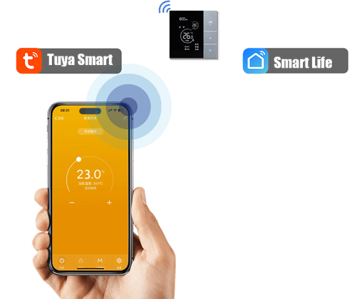 Use with Tuya or Smart Life applications. Download the application, set the thermostat to the status of the code match and add the smart thermostat to the application. You can then set parameters on your phone anytime and anywhere to control the thermostat remotely. It supports 2.4GHz WiFi and does not support 5.0GHz.