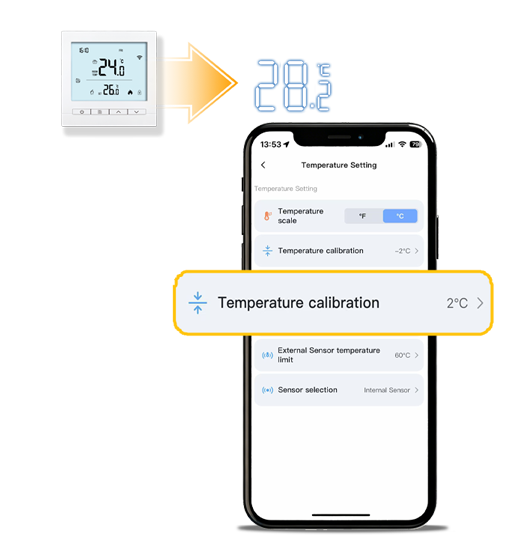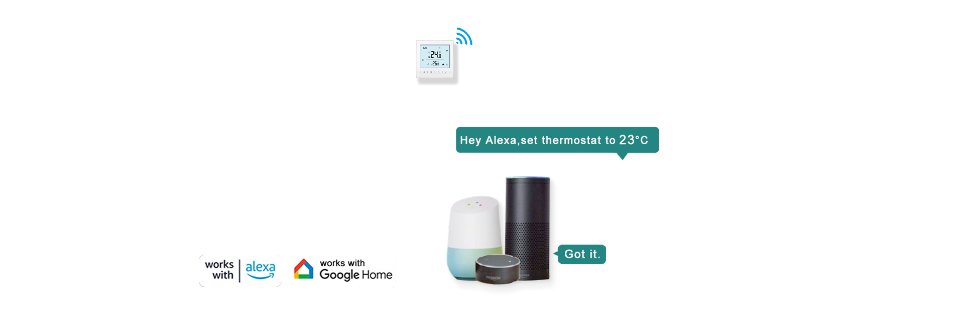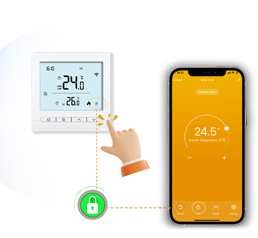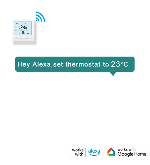 This thermostat features APP remote control and voice control, equipped with a clear LED display and sensitive touch buttons. It connects stably via 2.4GHz WIFI, supports programmable schedules, dimmable ambient lighting, and includes a child safety lock, fully meeting your needs for intelligence, convenience and safety.