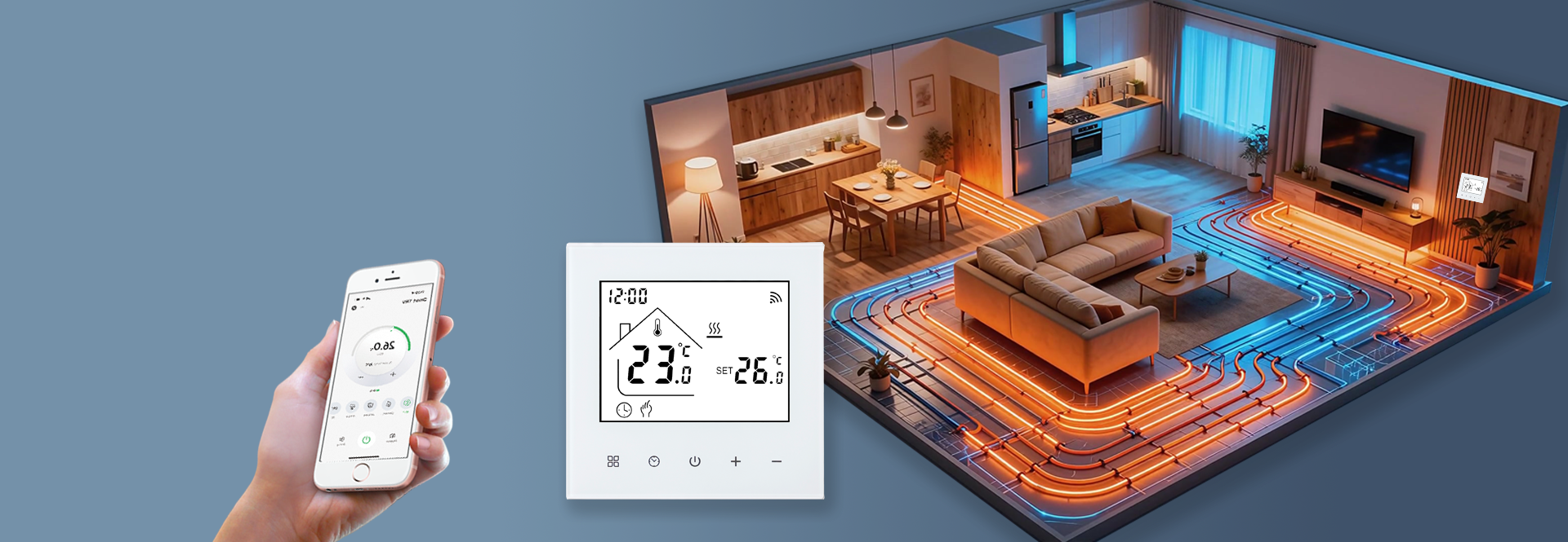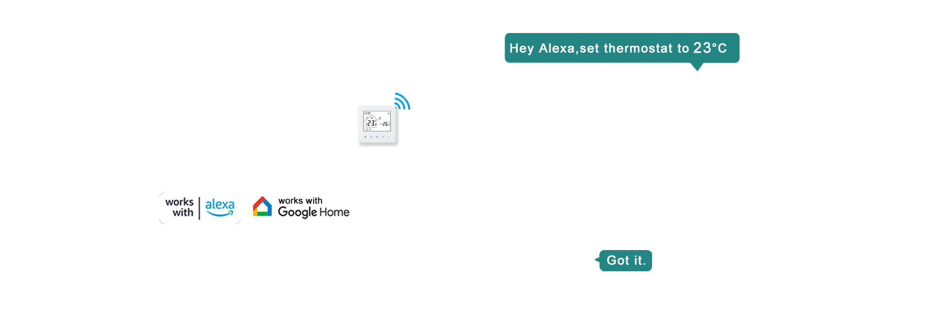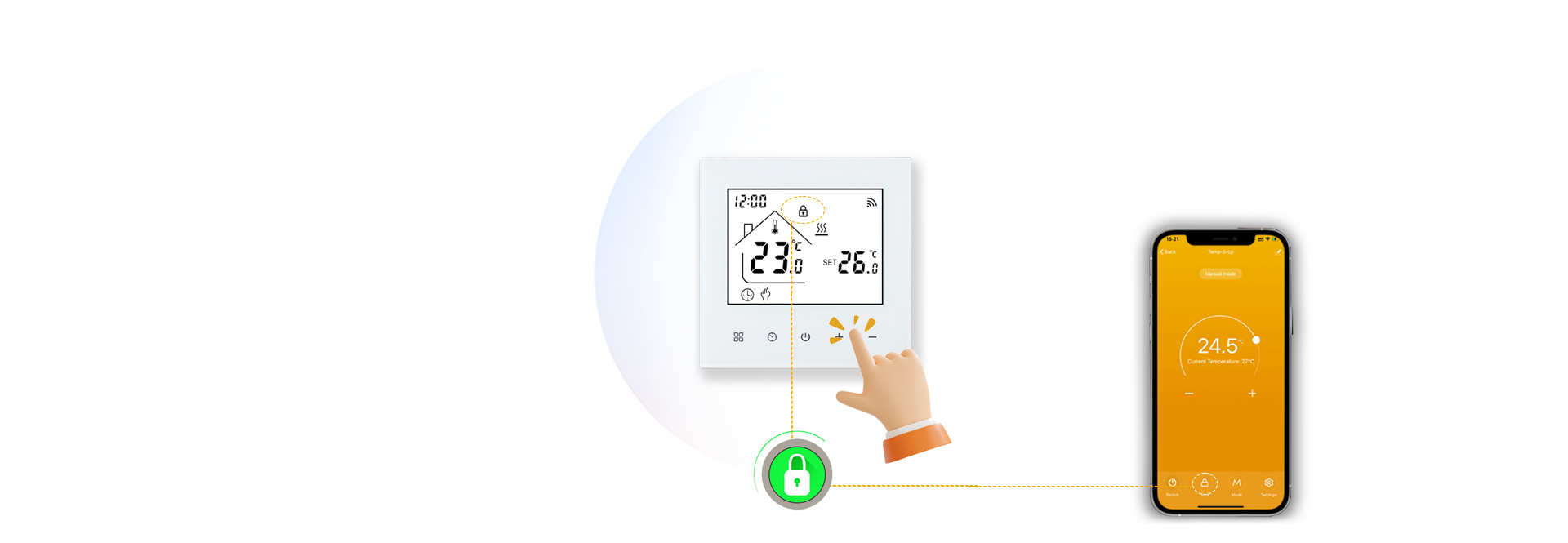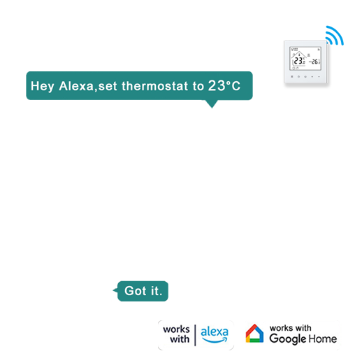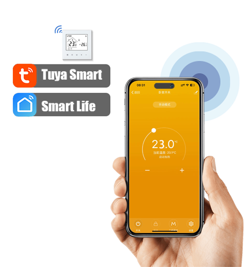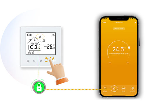 This thermostat features APP remote control and voice control, equipped with a clear LED display and sensitive touch buttons. It connects stably via 2.4GHz WIFI, supports programmable schedules, dimmable ambient lighting, and includes a child safety lock, fully meeting your needs for intelligence, convenience and safety.