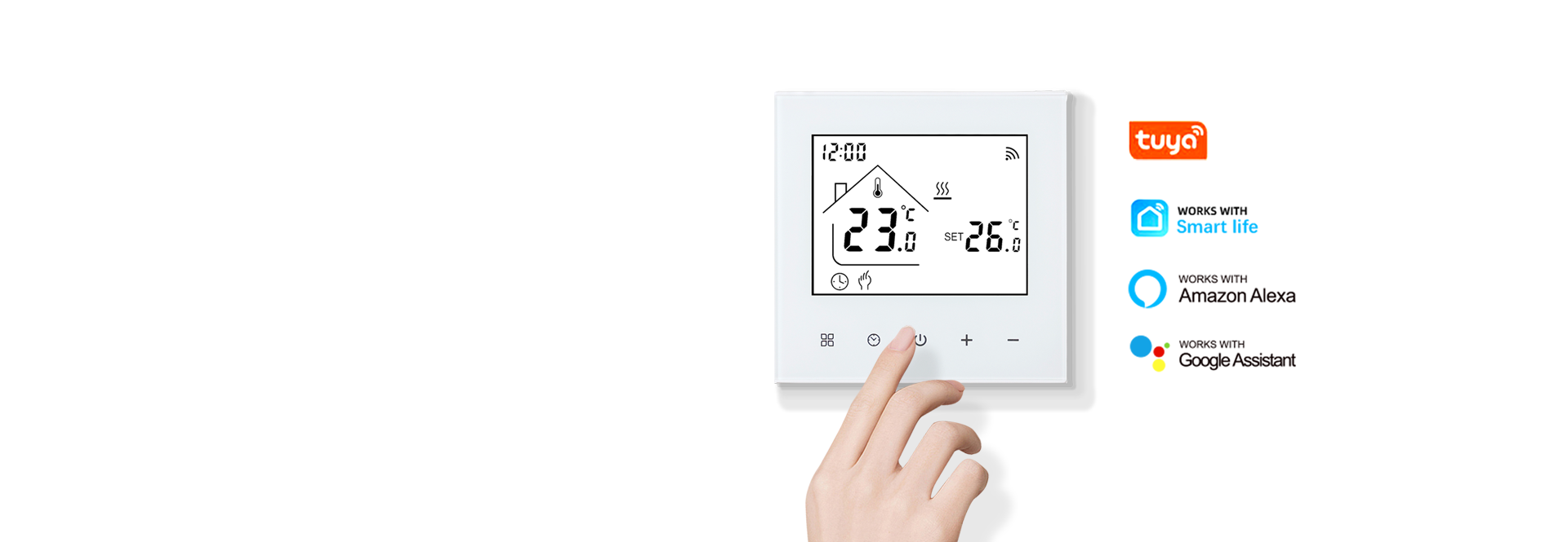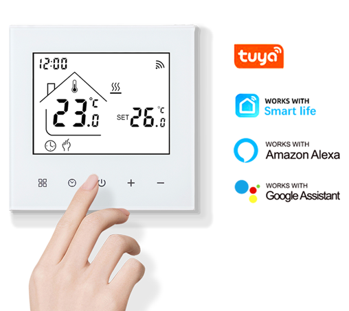 Smart, precise and reliable, this furnace thermostat is your ideal temperature management partner. Voice-compatible with Yandex Alice, Amazon Alexa and Google Home, and controllable remotely via the Tuya app, it simplifies daily temperature adjustments. Its scratch-resistant backlit LED touch screen ensures clear visibility, while the dual manual/automatic modes adapt to different usage scenarios. With built-in ambient and floor sensors, it achieves ±1°C accuracy and 6 daily programmable settings. Plus, power-off memory and child lock functions add extra convenience and safety.
